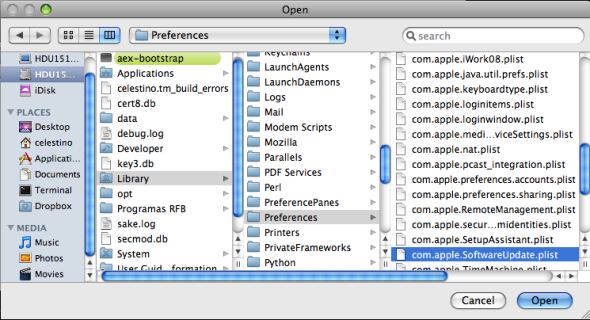Abrir o arquivo /Library/Preferences/com.apple.SoftwareUpdate.plist